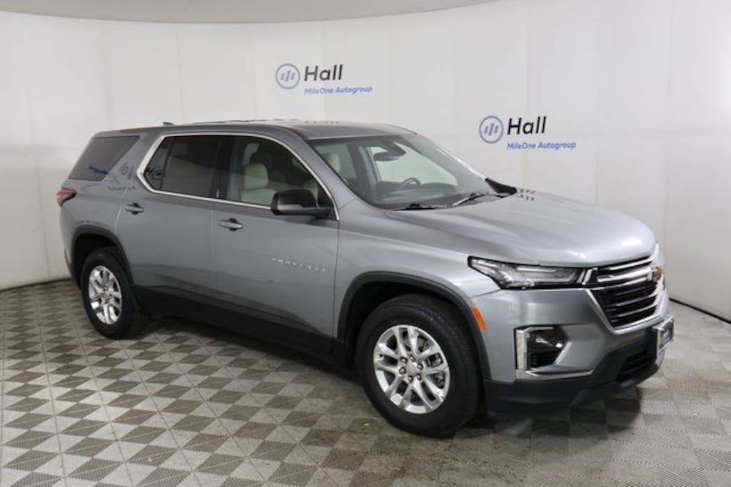 Clean CARFAX. Sterling Gray Metallic 2023 Chevrolet Traverse LS FWD 9-Speed Automatic 3.6L V6 SIDI VVT Traverse LS, 4D Sport Utility, 3.6L V6 SIDI VVT, 9-Speed Automatic, FWD, Sterling Gray Metallic, Jet Black/Chai Cloth, We are currently offering Vehicle Purchase Home Delivery by appointment. Please contact for details., Front License Plate Bracket Mounting Package, Preferred Equipment Group 1LS.