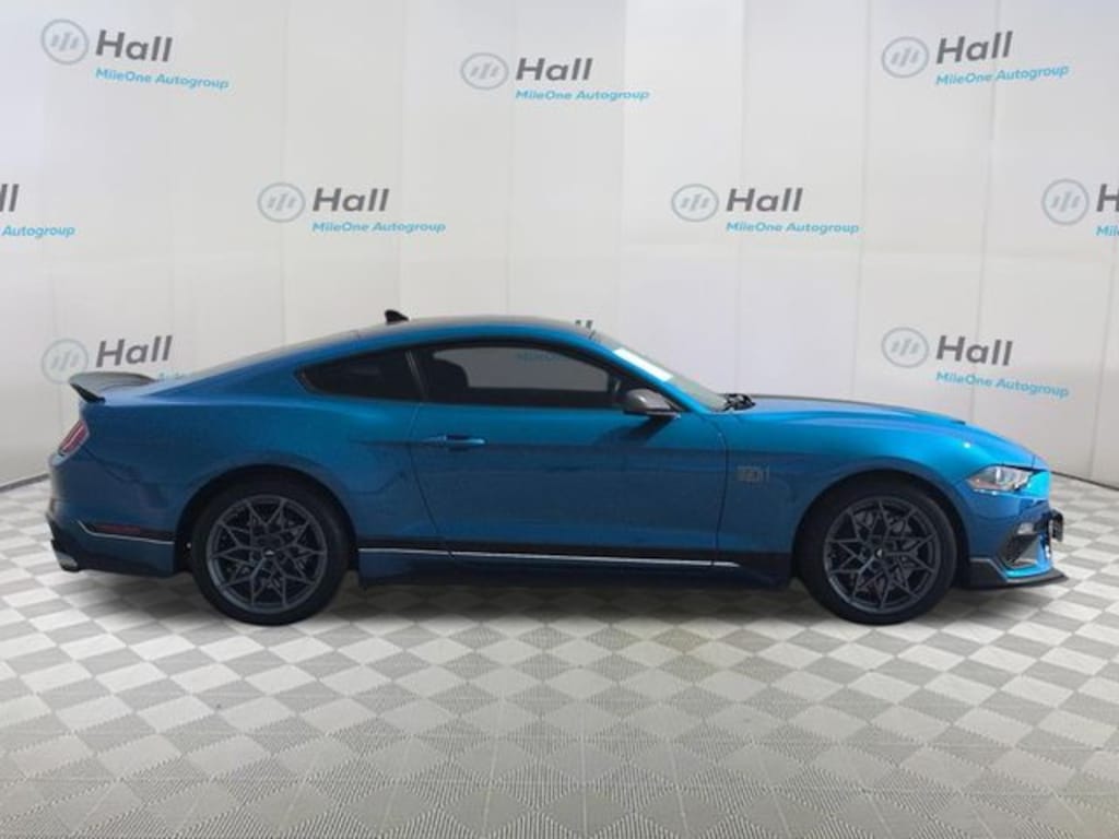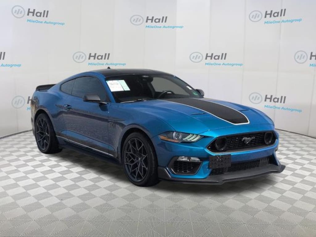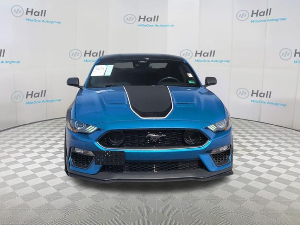 Blue 2021 Ford Mustang Mach 1 RWD Tremec 6-Speed Manual 5.0L V8 Ti-VCT We are currently offering Vehicle Purchase Home Delivery by appointment. Please contact for details., 4-Wheel Disc Brakes, 9 Speakers, ABS brakes, Adaptive suspension, Air Conditioning, Alloy wheels, AM/FM radio: SiriusXM, AM/FM Stereo, Auto High-beam Headlights, Auto-dimming Rear-View mirror, Automatic temperature control, Brake assist, Bumpers: body-color, Cloth Bucket Seats, Compass, Delay-off headlights, Driver door bin, Driver vanity mirror, Dual front impact airbags, Dual front side impact airbags, Electronic Stability Control, Emergency communication system: 911 Assist, Equipment Group 600A, Exterior Parking Camera Rear, Four wheel independent suspension, Front anti-roll bar, Front Bucket Seats, Front Center Armrest, Front dual zone A/C, Front fog lights, Front reading lights, Fully automatic headlights, Garage door transmitter, Heated door mirrors, Illuminated entry, Knee airbag, Low tire pressure warning, Occupant sensing airbag, Outside temperature display, Overhead airbag, Overhead console, Panic alarm, Passenger door bin, Passenger vanity mirror, Power door mirrors, Power driver seat, Power passenger seat, Power steering, Power windows, Radio data system, Rain sensing wipers, Rear anti-roll bar, Rear window defroster, Remote keyless entry, Security system, SiriusXM Radio, Speed control, Speed-sensing steering, Speed-Sensitive Wipers, Split folding rear seat, Spoiler, Steering wheel mounted audio controls, SYNC 3 Communications & Entertainment System, Tachometer, Telescoping steering wheel, Tilt steering wheel, Traction control, Trip computer, Turn signal indicator mirrors, Variably intermittent wipers, Voice-Activated Touch-Screen Navigation System, Voltmeter, Wheels: 19" x 9.5" Fr & 19" x 10" Rr Aluminum, Wheels: 19" x 9.5" Fr & 19" x 10" Rr Aluminum (64S).
