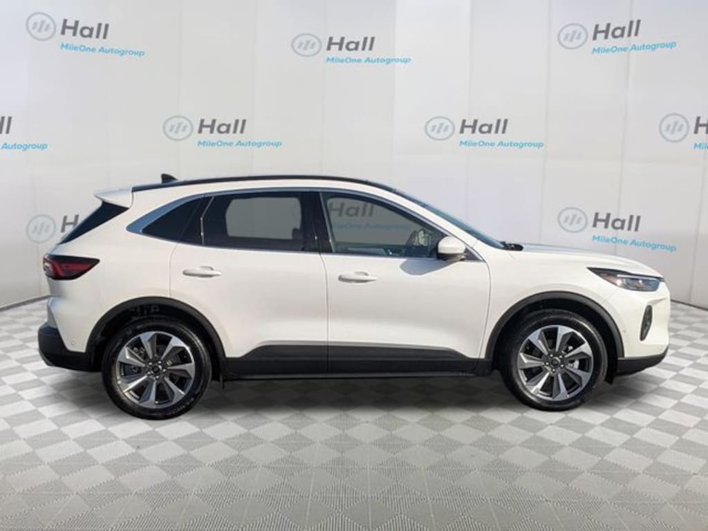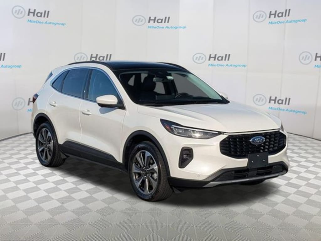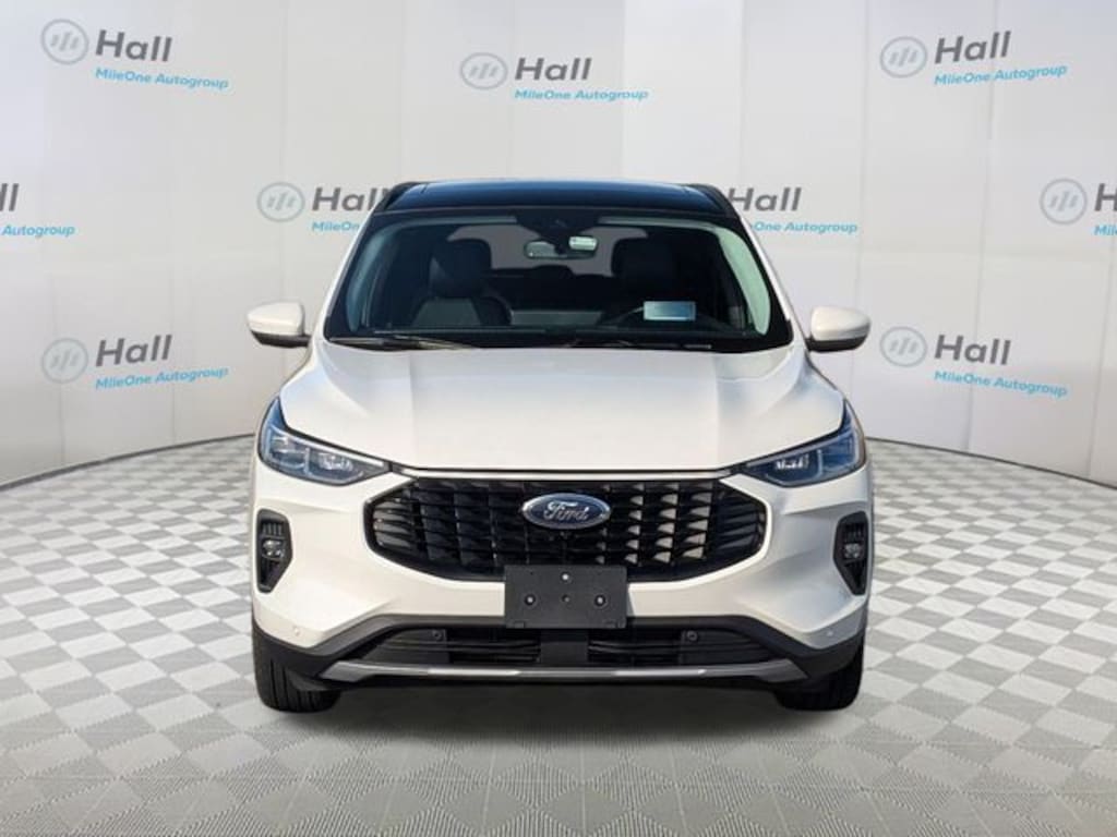 Clean CARFAX. White Metallic 2024 Ford Escape Platinum AWD 8-Speed Automatic EcoBoost 2.0L I4 GTDi DOHC Turbocharged VCT We are currently offering Vehicle Purchase Home Delivery by appointment. Please contact for details., AWD, 2.91 Axle Ratio, 4-Wheel Disc Brakes, 6 Speakers, ABS brakes, Active Park Assist 2.0, Air Conditioning, Alloy wheels, AM/FM radio: SiriusXM, AM/FM Stereo, Auto High-beam Headlights, Auto-dimming Rear-View mirror, Automatic temperature control, Black Roof-Rack Side Rails, Brake assist, Bumpers: body-color, Compass, Delay-off headlights, Driver door bin, Driver vanity mirror, Dual front impact airbags, Dual front side impact airbags, Electronic Fuel Door Release, Electronic Stability Control, Emergency communication system: SYNC 4 911 Assist, Equipment Group 601A, Exterior Parking Camera Rear, FordPass Connect, Four wheel independent suspension, Front anti-roll bar, Front Bucket Seats, Front Center Armrest, Front dual zone A/C, Front fog lights, Front reading lights, Fully automatic headlights, Garage door transmitter, HD Radio, Head-Up Display, Heated ActiveX Trimmed Front Sport Contour Bucket Seats, Heated door mirrors, Heated front seats, Heated Leather-Trimmed Front Sport Contour Seats, Heated steering wheel, Illuminated entry, Knee airbag, Low tire pressure warning, Memory seat, Navigation system: Connected Navigation, Neutral Towing Capability, Occupant sensing airbag, Outside temperature display, Overhead airbag, Overhead console, Panic alarm, Panoramic Vista Roof, Passenger door bin, Passenger vanity mirror, Pedestrian Alert Sounder, Power door mirrors, Power driver seat, Power Liftgate, Power passenger seat, Power steering, Power windows, Premium Technology Package, Radio data system, Radio: B&O Sound System by Bang & Olufsen, Rain sensing wipers, Rear anti-roll bar, Rear reading lights, Rear seat center armrest, Rear window defroster, Rear window wiper, Remote keyless entry, Roof rack: rails only, Security system, Speed control, Speed-sensing steering, Speed-Sensitive Wipers, Split folding rear seat, Spoiler, Steering wheel mounted audio controls, SYNC 4 w/Enhanced Voice Recognition, Tachometer, Telescoping steering wheel, Tilt steering wheel, Traction control, Trip computer, Variably intermittent wipers, Wheels: 19" Machined-Face Aluminum, AWD.