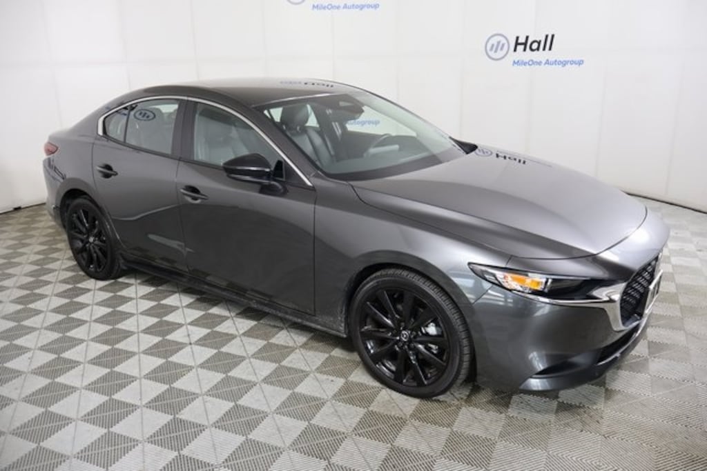 CARFAX One-Owner. Clean CARFAX. Machine Gray Metallic 2025 Mazda Mazda3 2.5 S Select Sport FWD 6-Speed Automatic 2.5L I4 DOHC 16V LEV3-SULEV30 191hp We are currently offering Vehicle Purchase Home Delivery by appointment. Please contact for details., 4-Wheel Disc Brakes, Alloy wheels, AppLink/Apple CarPlay and Android Auto, Auto High-beam Headlights, Black Lug Nuts & Black Wheel Locks, Brake assist, Driver door bin, Dual front impact airbags, Dual front side impact airbags, Emergency communication system: Mazda Connected Services (1-year complimentary trial included), Exterior Parking Camera Rear, Front reading lights, Fully automatic headlights, Heated door mirrors, High Wall All-Weather Floor Mats, Illuminated entry, Leather Shift Knob, Leather steering wheel, Leatherette Seat Trim, Machine Gray Metallic Paint Charge, MAZDA CONNECT Infotainment System, Outside temperature display, Overhead console, Panic alarm, Passenger door bin, Power door mirrors, Power steering, Power windows, Radio data system, Radio: AM/FM Audio System, Rain sensing wipers, Rear seat center armrest, Remote keyless entry, Speed control, Speed-sensing steering, Traction control, Variably intermittent wipers, Wheels: 18" x 7J Aluminum Alloy.