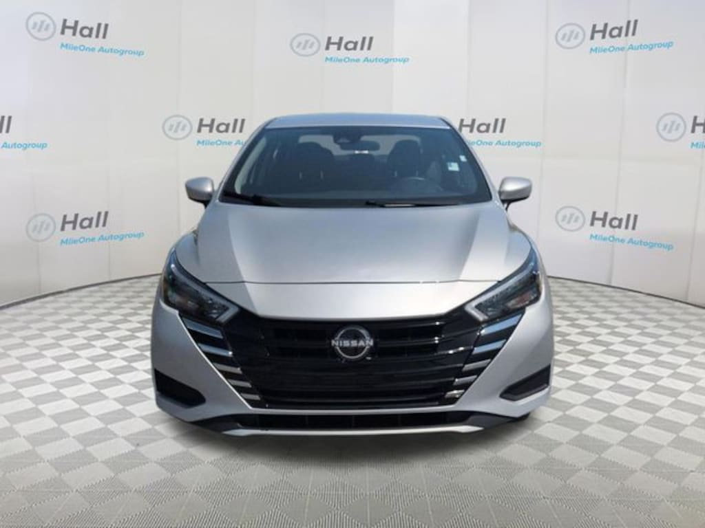 JUST ARRIVED. PENDING INSPECTION. Clean CARFAX. Brilliant Silver Metallic 2025 Nissan Versa 1.6 SV FWD CVT 1.6L I4 DOHC 16V We are currently offering Vehicle Purchase Home Delivery by appointment. Please contact for details., 16" Aluminum Alloy Wheels, 4 Speakers, ABS brakes, Air Conditioning, Alloy wheels, Apple CarPlay/Android Auto, Auto High-beam Headlights, Blind Spot Warning, Brake assist, Bumpers: body-color, Carpeted Floor Mats & Trunk Mat (5-Piece Set), Delay-off headlights, Driver door bin, Driver vanity mirror, Dual front impact airbags, Dual front side impact airbags, Electronic Stability Control, Front anti-roll bar, Front Bucket Seats, Front Center Armrest, Front reading lights, Front wheel independent suspension, Fully automatic headlights, Heated door mirrors, Illuminated entry, Knee airbag, Low tire pressure warning, Occupant sensing airbag, Outside temperature display, Overhead airbag, Panic alarm, Passenger door bin, Passenger vanity mirror, Power door mirrors, Power steering, Power windows, Radio data system, Radio: AM/FM Audio System, Rear Parking Sensors, Rear side impact airbag, Rear window defroster, Remote keyless entry, Speed control, Split folding rear seat, Steering wheel mounted audio controls, Tachometer, Telescoping steering wheel, Tilt steering wheel, Traction control, Trip computer, Upgraded Cloth Seat Trim, Variably intermittent wipers.