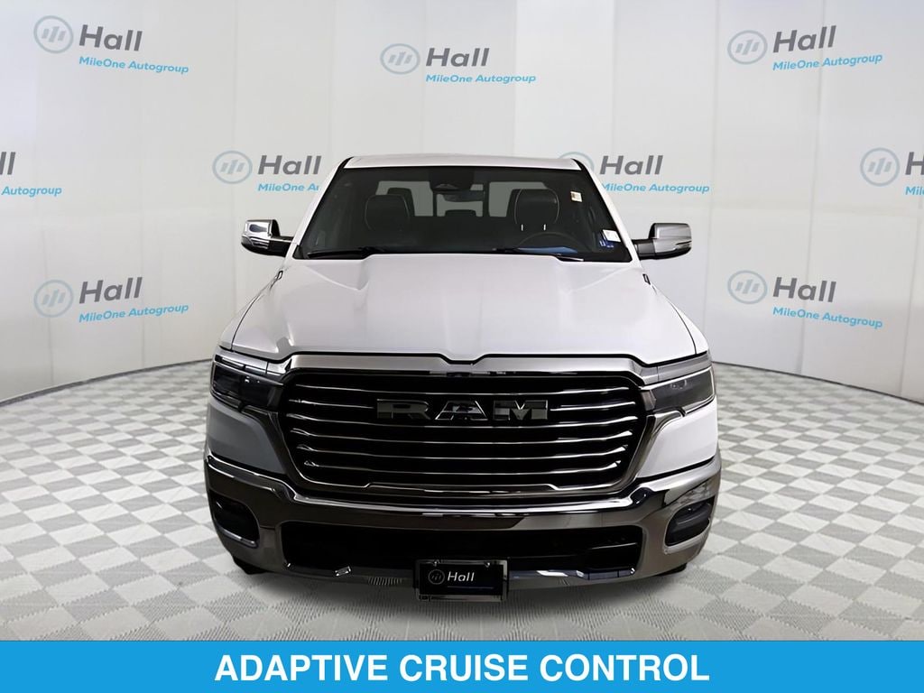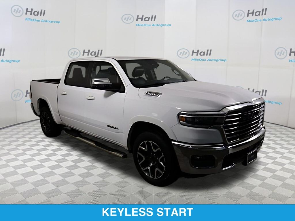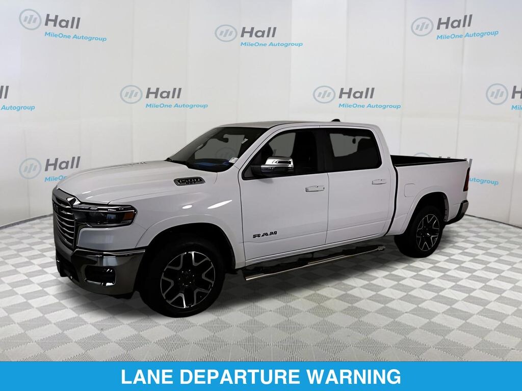 Bright White Clearcoat 2025 Ram 1500 Laramie 4WD 8-Speed Automatic 3.0L I6 1500 Laramie, 4D Crew Cab, 3.0L I6, 8-Speed Automatic, 4WD, Bright White Clearcoat, Black Leather, We are currently offering Vehicle Purchase Home Delivery by appointment. Please contact for details., GPS Navigation, Navigation System, ParkView Rear Back-Up Camera, Quick Order Package 21H Laramie.