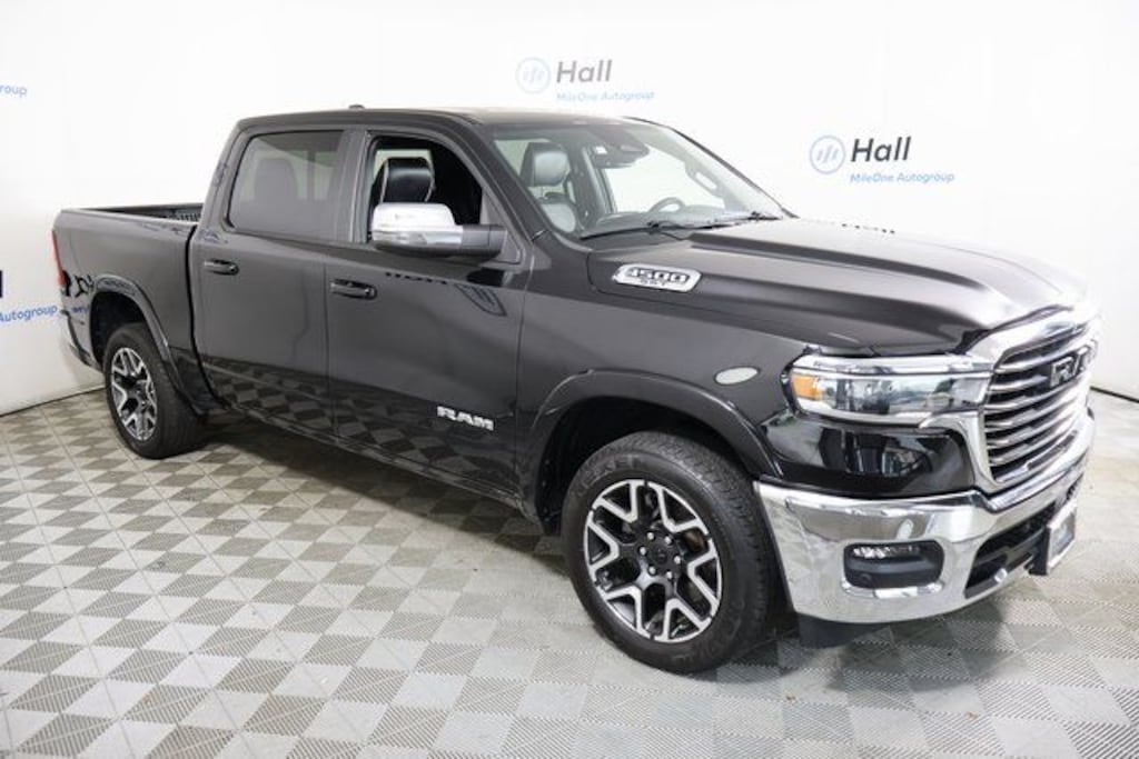 Clean CARFAX. Diamond Black Crystal Pearlcoat 2025 Ram 1500 Laramie 4WD 8-Speed Automatic 3.0L I6 We are currently offering Vehicle Purchase Home Delivery by appointment. Please contact for details..