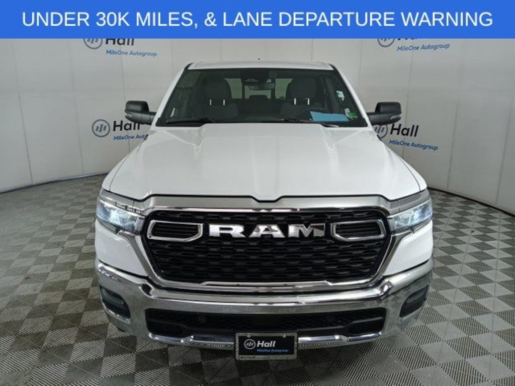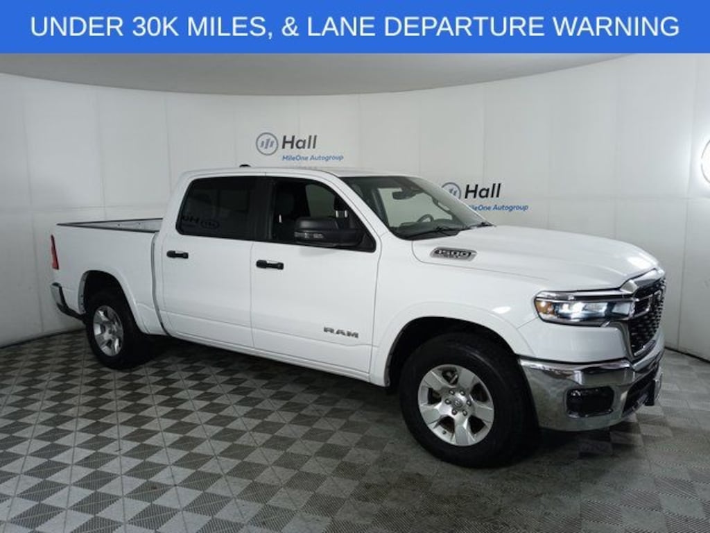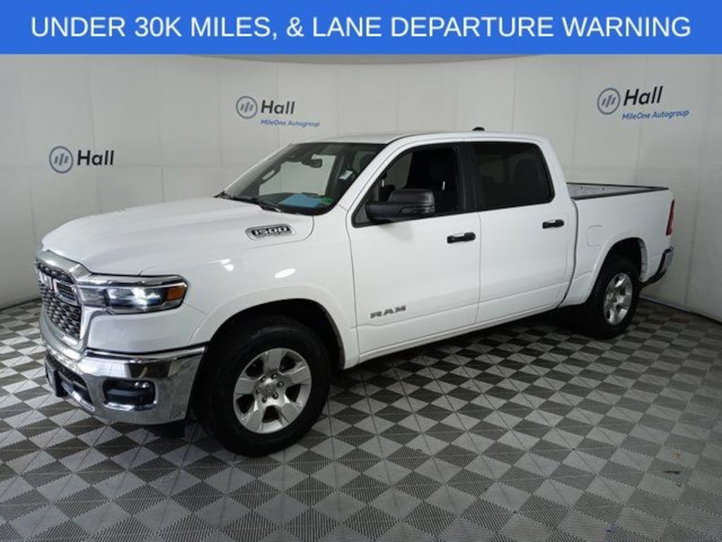 CARFAX One-Owner. Clean CARFAX. Bright White Clearcoat 2025 Ram 1500 Big Horn/Lone Star 4WD 8-Speed Automatic 3.0L I6 1500 Big Horn/Lone Star, 4D Crew Cab, 3.0L I6, 8-Speed Automatic, 4WD, Bright White Clearcoat, Black Cloth, We are currently offering Vehicle Purchase Home Delivery by appointment. Please contact for details., 115V Auxiliary Power Outlet, 115V Auxiliary Rear Power Outlet, 12" Touchscreen Display, 2nd Row In Floor Storage Bins, 400W Inverter, 4G LTE Wi-Fi Hot Spot, 9 Amplified Speakers w/Subwoofer, Air Conditioning ATC w/Dual Zone Control, Apple CarPlay, Auto Power-Folding Mirrors, Auto-Dimming Exterior Driver Mirror, Auto-Dimming Rear-View Mirror, Big Horn Level 2 Equipment Group, Black Exterior Mirrors, Black Premium Power Mirrors, Cluster 7.0" TFT Color Display, Configurable Drive Mode, Connected Travel & Traffic Services, Connectivity - US/Canada, Convex Wide-Angle Exterior Mirror Insert, Exterior Mirrors Courtesy Lamps, Exterior Mirrors w/Heating Element, Exterior Mirrors w/Supplemental Signals, Glove Box Lamp, Google Android Auto, GPS Antenna Input, GPS Navigation, HD Radio, Heated Front Seats, Heated Steering Wheel, Integrated Voice Command w/Bluetooth, Leather Wrapped Steering Wheel, LED Dome Lamp w/On/Off Switch, LED Footwell Lighting, Media Hub w/2 Charge Only USBs, Overhead LED Lamps, ParkView Rear Back-Up Camera, Power 2-Way Driver Lumbar Adjust, Power Adjust 8-Way Driver Seat, Power Adjustable Pedals, Premium Overhead Console, Quick Order Package 21Z Big Horn, Radio: Uconnect 5 Nav w/12.0" Display, Rear Power Sliding Window, Rear Window Defroster, Remote Tailgate Release, Security Alarm, SiriusXM w/360L, Steering Wheel Mounted Audio Controls, Sun Visors w/Illuminated Vanity Mirrors, Universal Garage Door Opener, USB Host Flip.