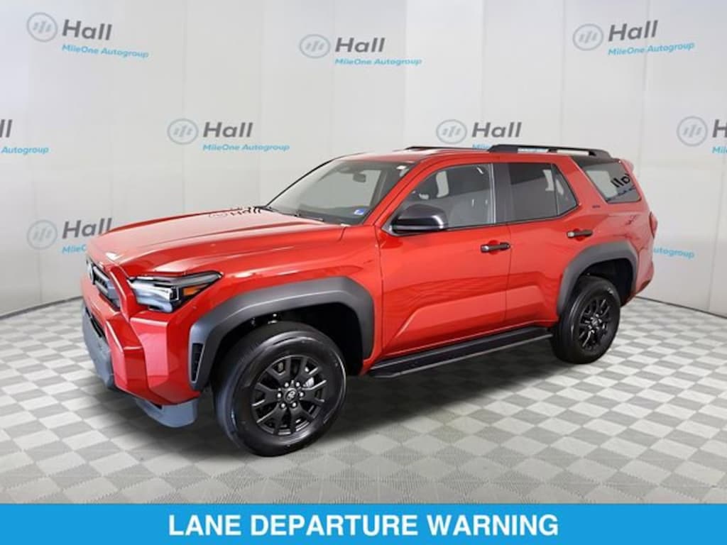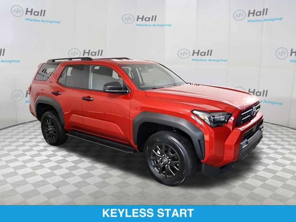 Supersonic Red 2025 Toyota 4Runner SR5 4WD 8-Speed Automatic 2.4L 4-Cylinder 4WD, Black w/Fabric Seat Trim (FA), ABS brakes, Active Cruise Control, Alloy wheels, Electronic Stability Control, Front dual zone A/C, Heated door mirrors, Illuminated entry, Low tire pressure warning, Remote keyless entry, Traction control.