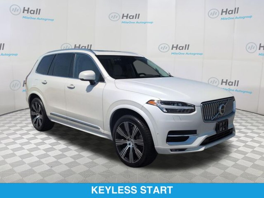 Clean CARFAX. Crystal White 2022 Volvo XC90 T6 Inscription AWD Automatic with Geartronic 2.0L I4 Turbocharged DOHC 16V LEV3-ULEV70 316hp We are currently offering Vehicle Purchase Home Delivery by appointment. Please contact for details., AWD, Blond Leather, 14 Speakers, 360 Surround View Camera, 3rd row seats: bucket, 4-Wheel Disc Brakes, ABS brakes, Advanced Package, Air Conditioning, Air Purifier, Alloy wheels, AM/FM radio: SiriusXM, Anti-whiplash front head restraints, Apple CarPlay/Android Auto, Auto High-beam Headlights, Auto-dimming door mirrors, Auto-dimming Rear-View mirror, Automatic temperature control, Bodyside moldings, Brake assist, Bumper Cover, Bumpers: body-color, Cargo Tray, Climate Package, Delay-off headlights, Driver door bin, Driver vanity mirror, Dual front impact airbags, Dual front side impact airbags, Electronic Stability Control, Emergency communication system: Volvo Cars App w/4 Year Subscription, Exterior Parking Camera Rear, Four wheel independent suspension, Front anti-roll bar, Front Bucket Seats, Front Center Armrest w/Storage, Front dual zone A/C, Front fog lights, Front reading lights, Fully automatic headlights, Garage door transmitter: HomeLink, Genuine wood dashboard insert, Genuine wood door panel insert, Graphical Head-Up Display, harman/kardon® Speakers, Headlight High Pressure Cleaning, Heated & Ventilated Front Bucket Seats, Heated door mirrors, Heated front seats, Heated Rear Seats, Heated Steering Wheel, Illuminated entry, Knee airbag, Leather Shift Knob, License Plate Frame, Low tire pressure warning, Memory seat, Navigation system: Sensus Navigation, Occupant sensing airbag, Outside temperature display, Overhead airbag, Panic alarm, Park Assist Pilot, Passenger door bin, Passenger vanity mirror, Perforated Nappa Leather Upholstery, Power door mirrors, Power driver seat, Power moonroof, Power passenger seat, Power steering, Power windows, Premium audio system: Sensus Connect, Protection Package Premier, Radio data system, Radio: harman/kardon Premium Audio System, Rain sensing wipers, Rear air conditioning, Rear anti-roll bar, Rear dual zone A/C, Rear fog lights, Rear reading lights, Rear seat center armrest, Rear window defroster, Rear window wiper, Remote keyless entry, Rubber Floor Mats, Security system, Speed control, Speed-sensing steering, Split folding rear seat, Spoiler, Steering wheel mounted audio controls, Tachometer, Telescoping steering wheel, Tilt steering wheel, Traction control, Trip computer, Turn signal indicator mirrors, Variably intermittent wipers, Ventilated front seats, Wheel Locks, Wheels: 20" 10-Spoke Black Diamond Cut Alloy, Wheels: 21" 8-Multi Spoke Black Diamond Cut Alloy, AWD, Blond Leather.